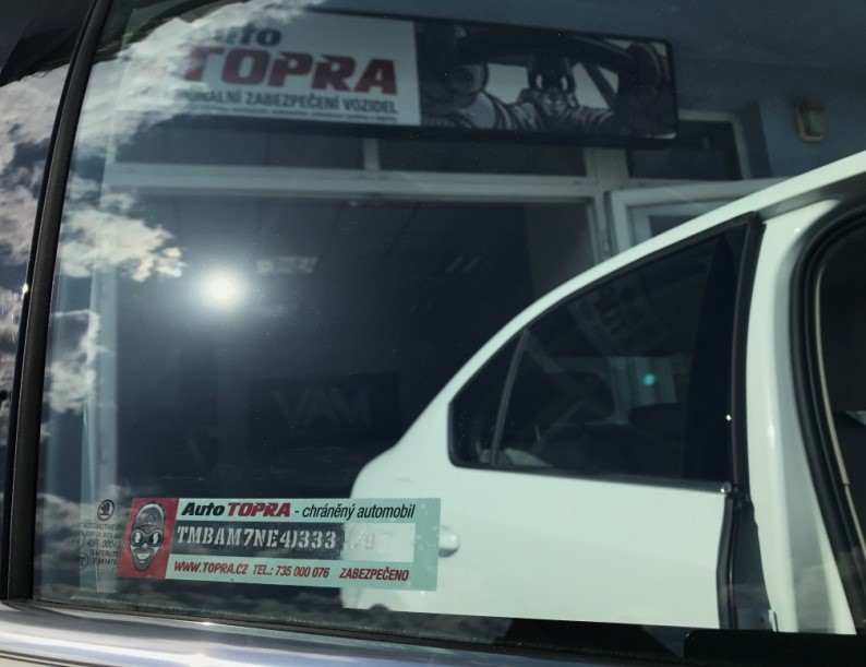- Pískování 6ks oken jako další prvek zabezpečení (zdarma u Auto Topra)